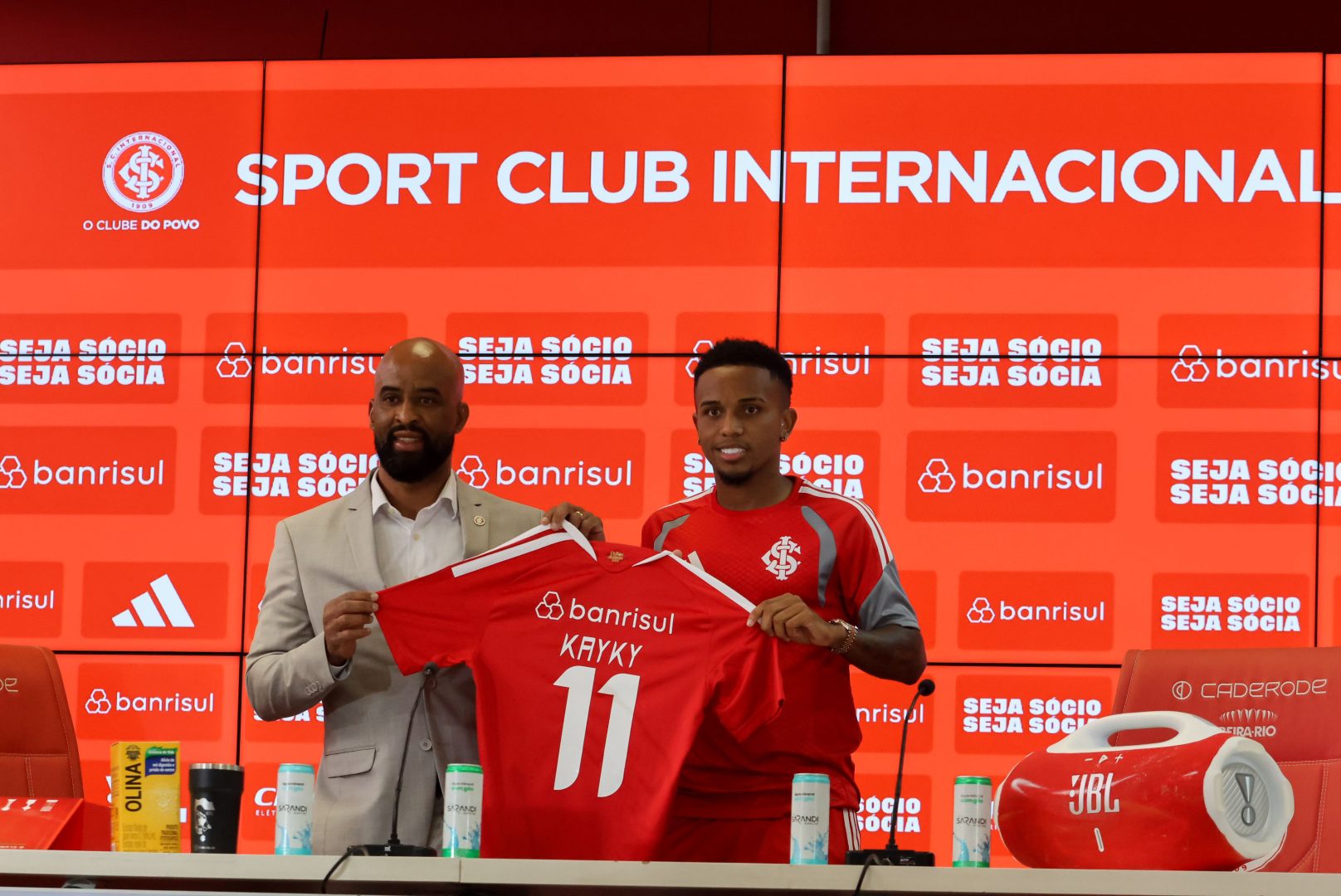 Foto: Ricardo Duarte/InterO diretor executivo de Futebol do Colorado, Fabinho Soldado, apresentou oficialmente, nesta sexta-feira (13), o novo atacante Kayky. O jogador, que já estreou com a camisa colorada na derrota para o Palmeiras pela 3ª rodada do Brasileirão, na última quinta-feira, no Beira-Rio, concedeu entrevista coletiva na sala de imprensa do estádio. Ele falou sobre as razões que o levaram a aceitar a proposta do Clube do Povo e suas expectativas para a temporada 2026.