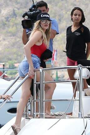 Khloe Kardashian usou um shortinho jeans curtinho e exibiu suas curvas generosas nesta quarta-feira (19). A socialite está com a família na ilha de Saint Barths, no Caribe, gravando cenas do reality show “Keeping up with the Kardashians”. Além de Khloe, Kylie Jenner e Kendall Jenner também se divertiram durante passeio de barco.
