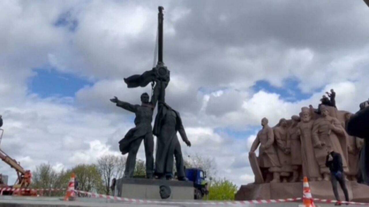 Foto: Reprodução de vídeoUm monumento da era soviética erguido em Kiev para simbolizar a amizade entre a Rússia e a Ucrânia foi derrubado, na terça-feira (26), em resposta à invasão russa ao país vizinho, de acordo com a prefeitura da cidade.