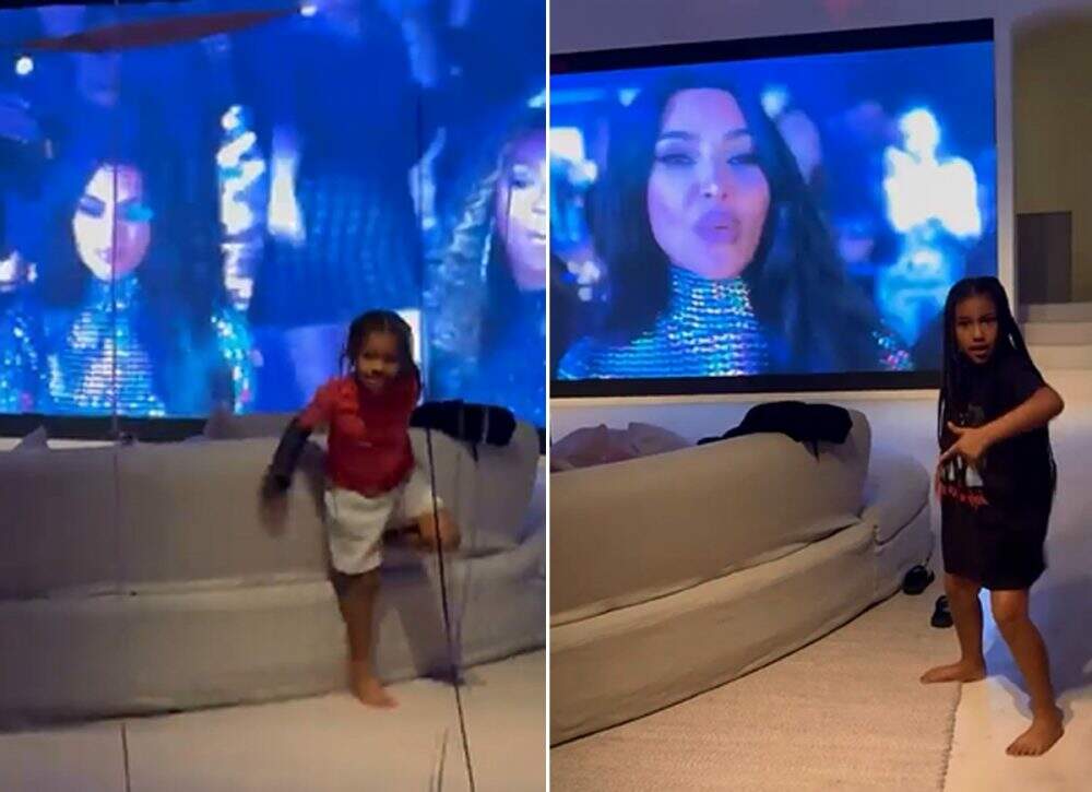 Nos registros, aparecem dançando a primogênita, North, de 8 anos, e Saint, de 5. Kim e Kanye ainda são pais de mais duas crianças: Chicago, de 3 anos, e Psalm, de 2.
