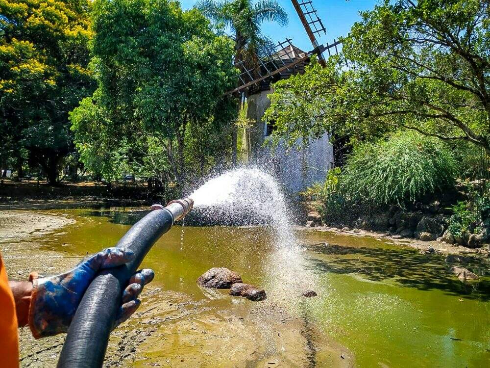 A Smams (Secretaria Municipal do Meio Ambiente e da Sustentabilidade) colocou cerca de 40 mil litros de água no lago do Parcão (Parque Moinhos de Vento) na tarde desta segunda-feira (30). A medida foi tomada por causa do tempo seco.