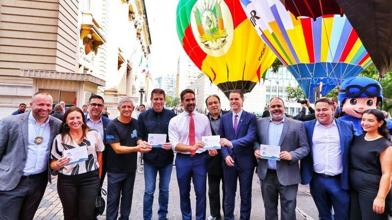 O 34º Festival Internacional de Balonismo foi lançado, na manhã desta segunda-feira (8), no Palácio Piratini, em Porto Alegre. O evento contou com a presença do governador Eduardo Leite e do secretário de Turismo em exercício, Luiz Fernando Rodriguez Júnior. Neste ano, o festival, que será realizado entre os dias 1º e 5 de maio, terá a participação de mais de 70 balões que irão colorir o céu de Torres, que recebeu o título de Capital Nacional do Balonismo.