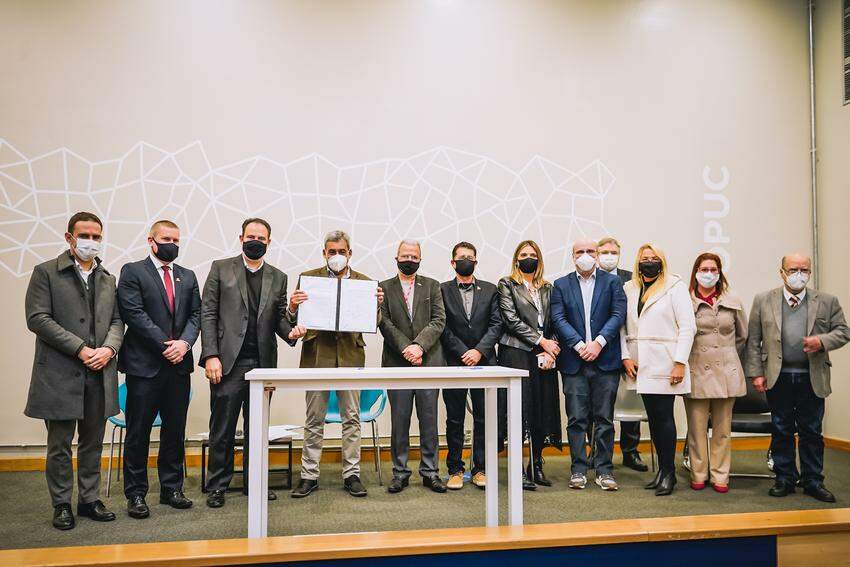 Ele e o seu vice, Ricardo Gomes, se reuniram com parceiros, empreendedores e representantes dos parques científicos e tecnológicos Zenit, Tecnosinos e Tecnopuc para a assinatura da lei complementar do Executivo, que entra em vigor a partir desta quarta-feira (16).