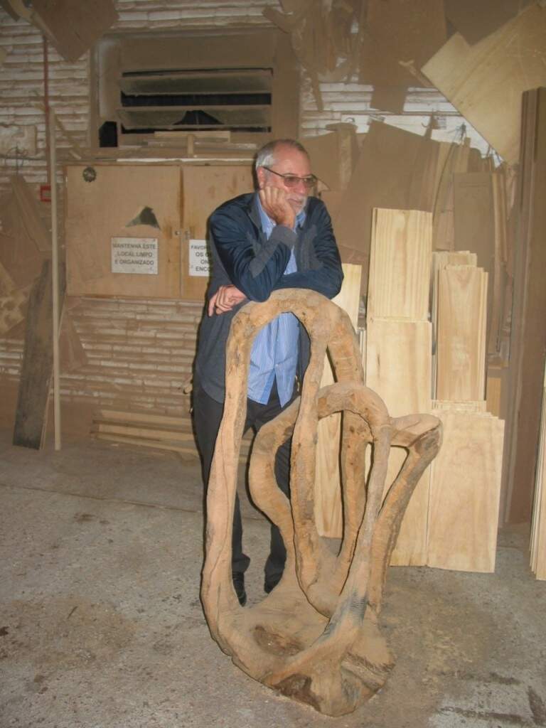 O conjunto selecionado para a venda, que inclui a monumental mesa talhada num troco multicentenário e duas poltronas da mesma cepa, tem peças trazidas do acervo do designer para o primeira venda realizada na Villa Bertti, criando uma nova atração para Gramado.