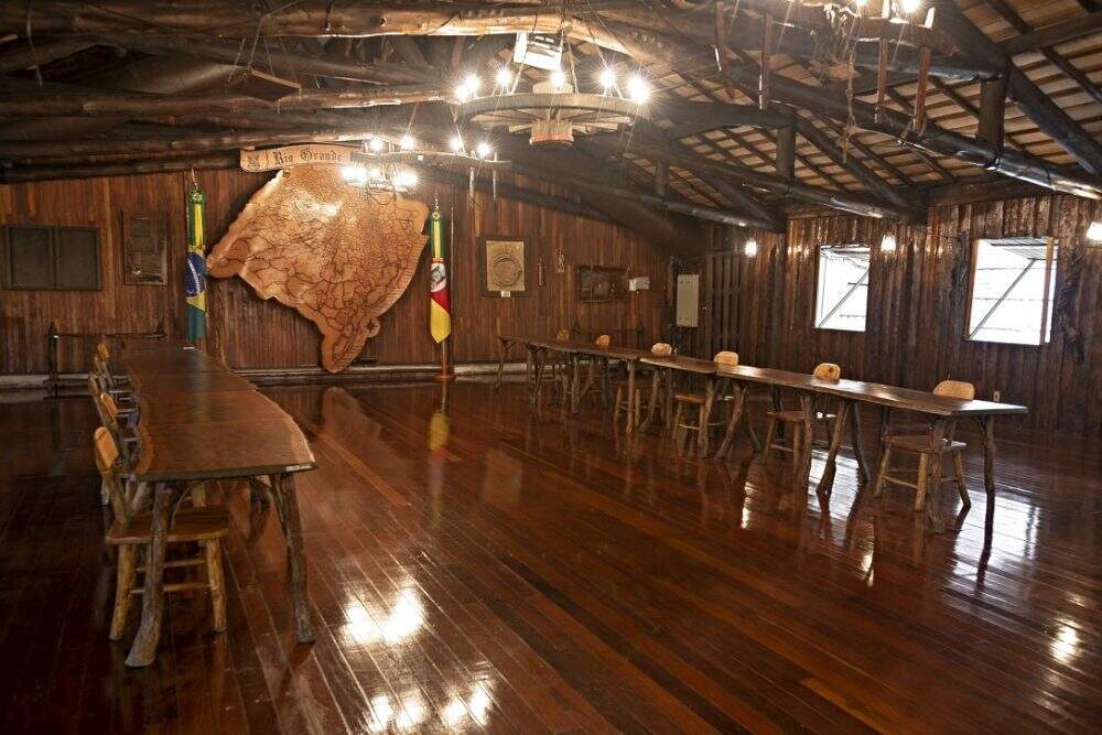 Na semana seguinte ao jantar o Faccioni se lançou a luta. Não sabia como começar. Não tinha nem ideia de como era, nem de como conseguir construir um Galpão conforme a tradição. Chamou o Glauco Saraiva (autor do icônico poema “Chimarrão) e pediu que o orientasse e lhe desse assessoria na empreitada. E assim, com a ajuda do Glauco e apoio financeiros de empresários, foi construído um típico, autêntico e belo Galpão Crioulo no terreno do Palácio, onde está até hoje e muito tem servido para confirmar, autenticar e cultuar, a força das tradições de nosso Estado.