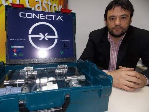 No evento que começou na terça-feira (18/07) e prossegue até quinta-feira (20/07), na cidade de Serra (ES), a empresa gaúcha de pequeno porte está mostrando os inovadores produtos Castor (sistema universal de emenda de mangueiras hidráulicas e pneumáticas) e Conecta (adaptador universal que substitui qualquer tipo de rosca e possibilita unir equipamentos hidráulicos compatíveis).