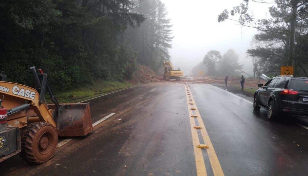 • ERS-122, entre os km 39 e 51, de Nova Milano (Farroupilha) a São Vendelino, devido à queda de barreiras e rompimento de pista.