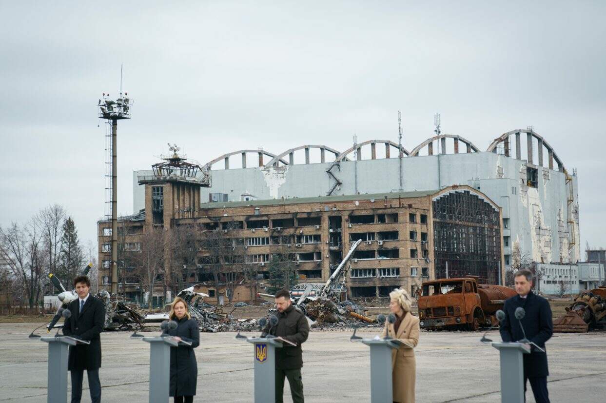A italiana Giorgia Meloni, o canadense Justin Trudeau, o belga Alexander De Croo e Ursula von der Leyen chegaram à capital ucraniana vindos de trem da Polônia. “Este lugar é o símbolo do fracasso de Moscou, este lugar é o símbolo do orgulho ucraniano… Esta terra é um pedaço da nossa casa e faremos a nossa parte para defendê-la”, disse Meloni.