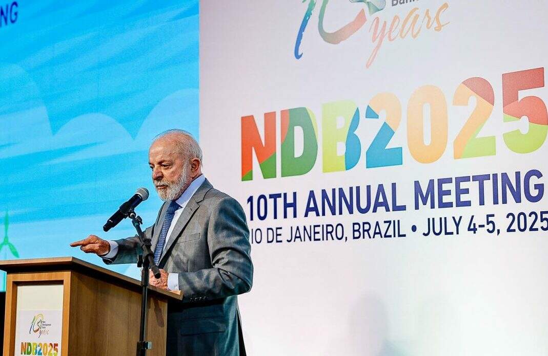 O presidente Lula discursou na abertura da 10ª reunião anual do Novo Banco de Desenvolvimento (NDB), instituição financeira do Brics, bloco de emergentes que prega a reforma das instituições financeiras, como o FMI, e de governança global, como as Nações Unidas. Ele falou para os governadores dos países membros do banco, os respectivos ministros de finanças, reunidos no Rio.