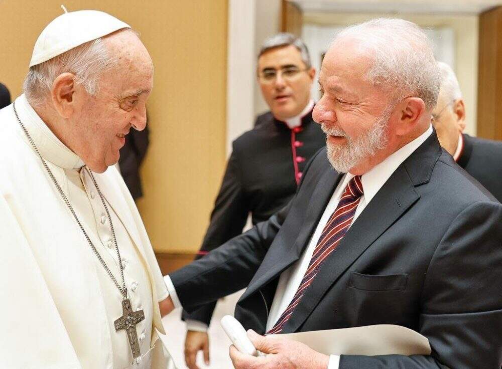 O presidente Luiz Inácio Lula da Silva e o papa Francisco se encontraram, nesta quarta-feira (21), no Vaticano. Em publicação nas redes sociais, Lula agradeceu ao pontífice pela “boa conversa sobre a paz no mundo”. A visita faz parte da agenda que Lula cumpre na Europa, nessa semana, quando passará por Itália e França.