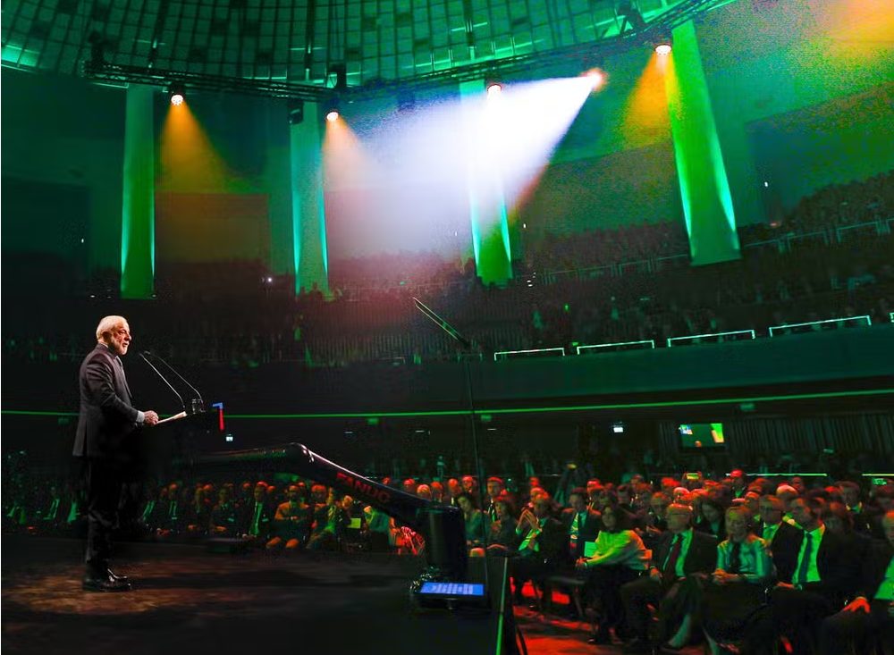 “O convite para a feira de Hannover consolida a posição do Brasil como parceiro confiável em mundo de instabilidade e incerteza”, disse Lula em seu discurso, que fez novas críticas diretas e indiretas ao presidente dos EUA, Donald Trump, e à guerra no Irã.