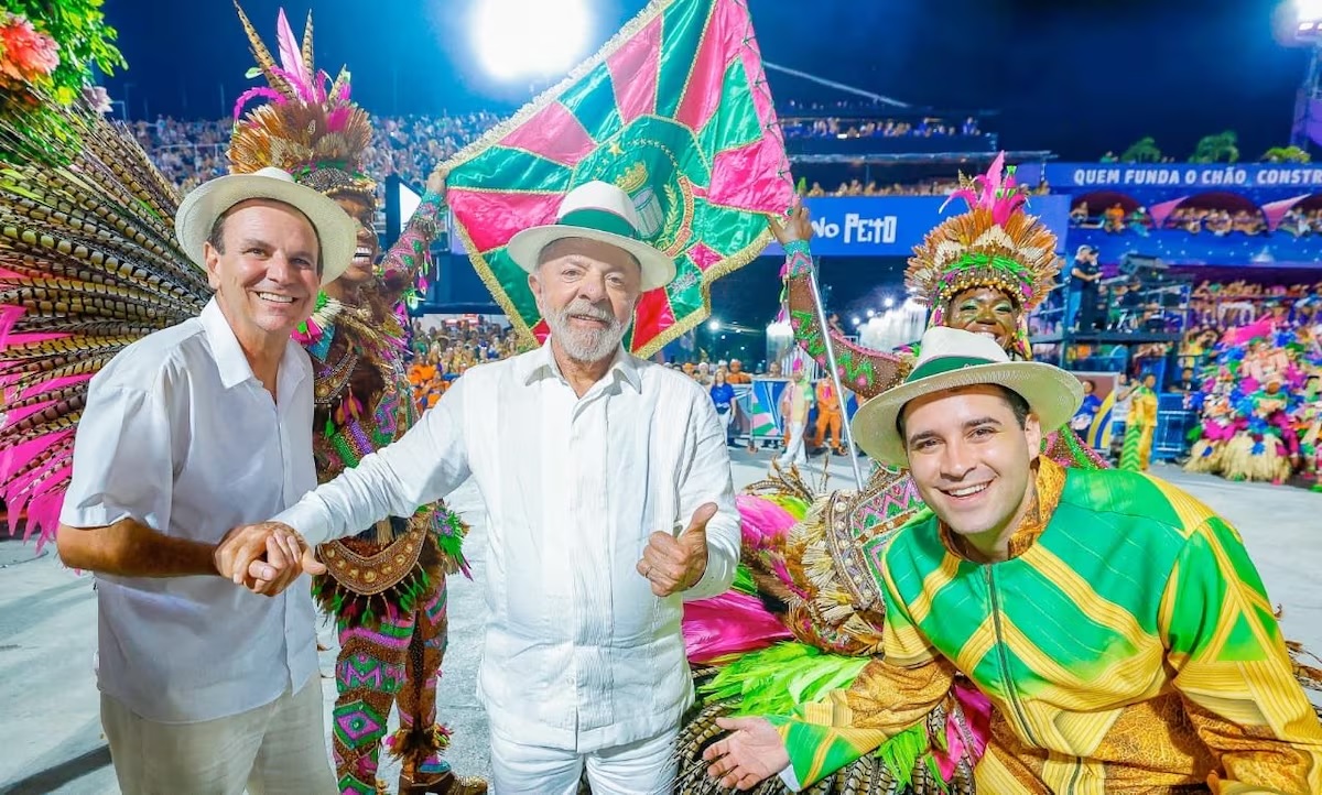 Foto: Ricardo Stuckert/PRHoras após ser homenageado pela escola de samba Acadêmicos de Niterói, na Marquês de Sapucaí, o presidente Lula (PT) publicou na manhã desta segunda-feira, 16, fotos com integrantes das outras três agremiações que desfilaram na véspera no Rio de Janeiro. A estratégia, replicada pelo partido nas redes, tenta rebater acusações de propaganda eleitoral antecipada. A oito meses da eleição, a escola usou jingles anteriores de campanha do petista, como “olê, olê, olê, olá, Lula, Lula”.