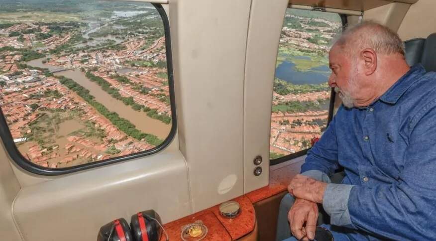 Foto: Ricardo Stuckert/PRO presidente Luiz Inácio Lula da Silva (PT) sobrevoou, na manhã deste domingo (9), a cidade de Trizidela do Vale – um dos mais prejudicados entre os 64 municípios do Maranhão que enfrentam os impactos de fortes chuvas há semanas.