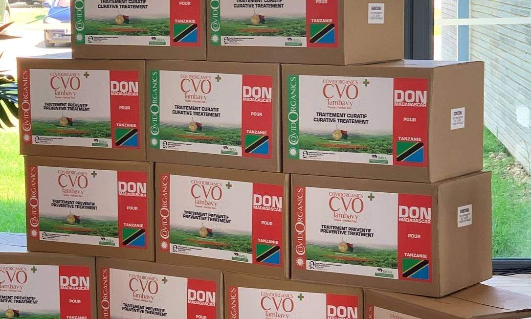 “Este chá de ervas dá resultados em sete dias”, garantiu o presidente, em cerimônia no Instituto Malgaxe de Investigação Aplicada (IMRA, na sigla em inglês), que desenvolveu o medicamento. “Vou ser o primeiro a beber isto hoje, na frente de todos, para mostrar que este produto cura e não mata.”