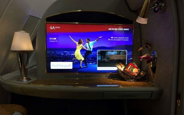 O avião tem 14 assentos para a Primeira Classe, 76 para a Business e 401 para a Econômica. A aeronave conta com wi-fi para todos os passageiros e tela com mais de 2,6 mil canais de filmes, programas de TV, músicas e podcasts.