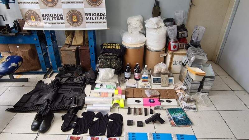 Foto: Divulgação/BMNesta quinta-feira (14), o 1º Batalhão de Polícia de Choque da Brigada Militar apreendeu no interior da Vila Bom Jesus uma grande quantidade de drogas, materiais utilizados em roubos a banco e arma de fogo.