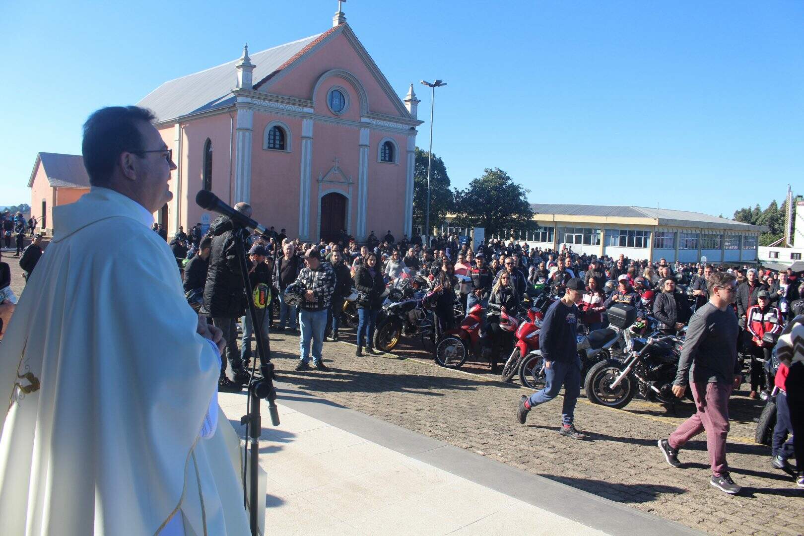 Foto: Leandro Ávila/DivulgaçãoNa tarde deste sábado (21), ocorreu a 43ª Romaria dos Motociclistas ao Santuário Diocesano de Nossa Senhora de Caravaggio. A mais antiga das pré-romarias reuniu cerca de 4 mil pessoas, segundo números da Brigada Militar.