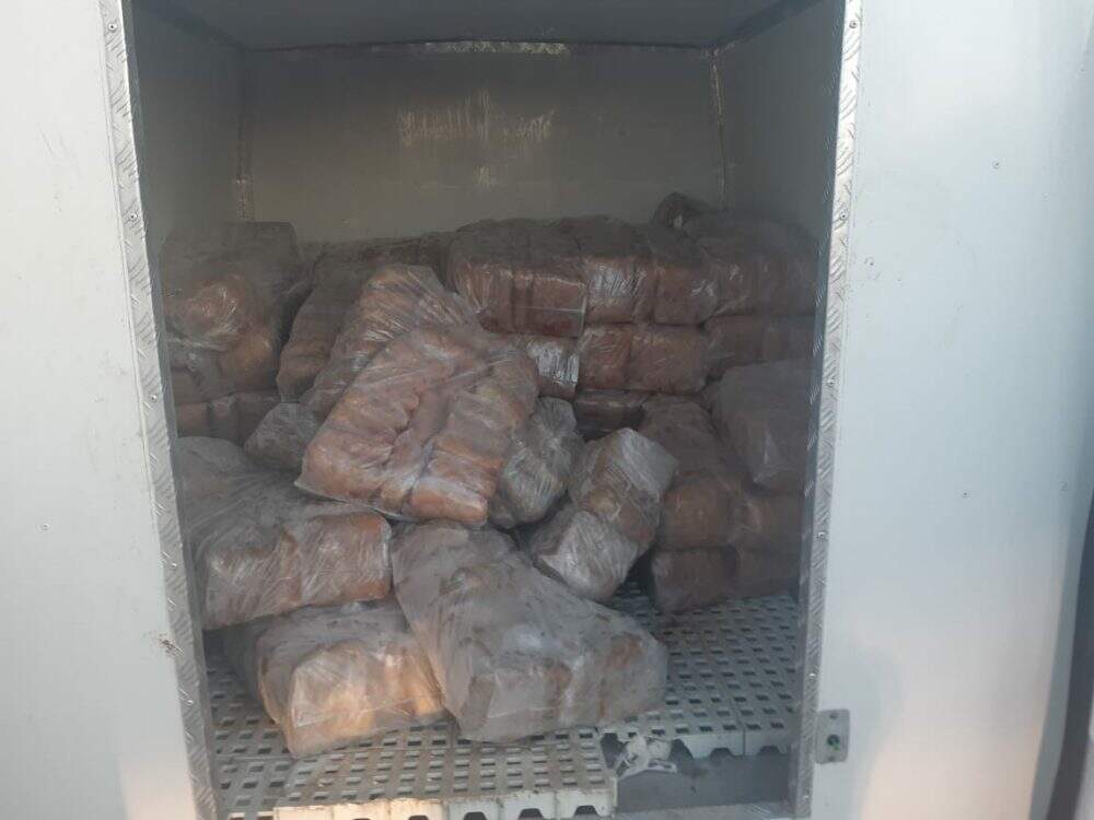 O alimento seria levado sem refrigeração por mais de 500 quilômetros até o destino final, oferecendo grande risco à saúde dos consumidores. A carga, acondicionada em sacos plásticos, estava em um veículo com placas de Novo Hamburgo.