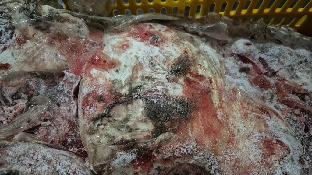 “Muitos dos produtos apresentavam aspecto, cor e odor repugnantes, forte indicativo de deterioração ou contaminação. Também foram identificadas caixas plásticas totalmente sujas, mau estado de conservação dos equipamentos e forte odor de esgoto na área externa onde estavam instalados os contêineres. Além disso, na câmara fria do açougue foram localizados cortes de carne com as mesmas características inadequadas e rotulados como ‘carne de processamento’, com revalidação de datas, o que aumenta a gravidade das irregularidades constatadas”, informou o MP.