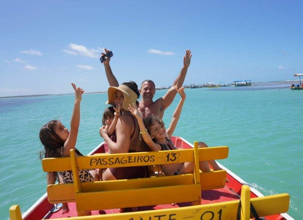 Nos stories, os dois compartilharam registros de passeio de barco no mar, dia na praia e ainda babaram pelos pequenos, divulgando várias fotos das meninas com o caçulinha no colo.