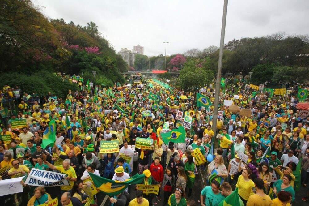 Manifestantes foram às ruas em Porto Alegre no domingo (16) protestar contra o governo federal. (Foto: Lucas Uebel/ O Sul)