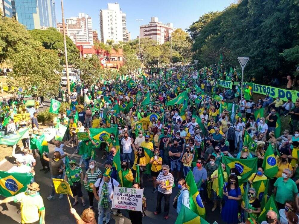 Os manifestantes pediram o voto impresso nas próximas eleições, criticaram o STF (Supremo Tribunal Federal), o comunismo, o ex-presidente Lula e o governador Eduardo Leite.