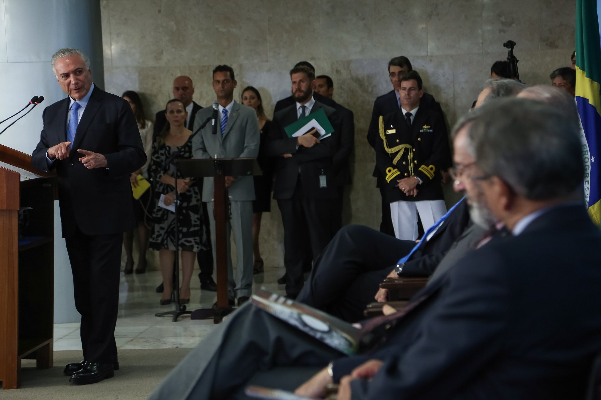 Manifestantes invadiram nesta quarta-feira (16) o plenário da Câmara dos Deputados, em Brasília, e gritaram palavras de ordem, como “viva Sergio Moro”, em referência ao juiz responsável pela Operação Lava Jato, “a nossa bandeira jamais será vermelha” e cantaram o Hino Nacional.