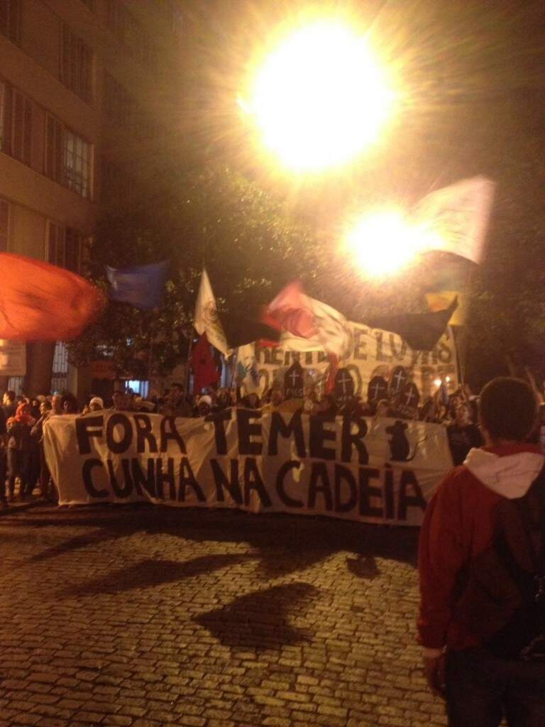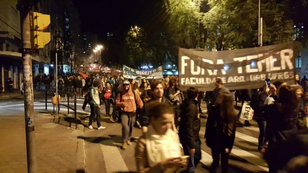 Manifestantes realizaram na noite desta quinta-feira (19) mais um ato no Centro de Porto Alegre contra o governo interino. Ele é intitulado “Terceiro Ato contra o Golpe: Fora, Temer!”.