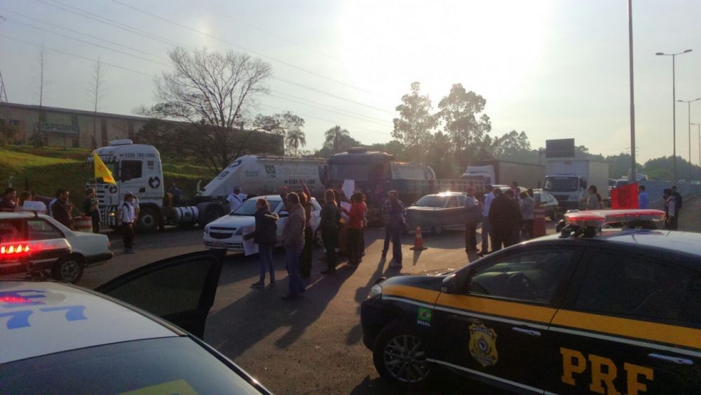 Segundo a PRF (Polícia Rodoviária Federal), o grupo de cerca de 50 pessoas era formado por professores e brigadianos. O trânsito foi liberado por volta das 8h30min.