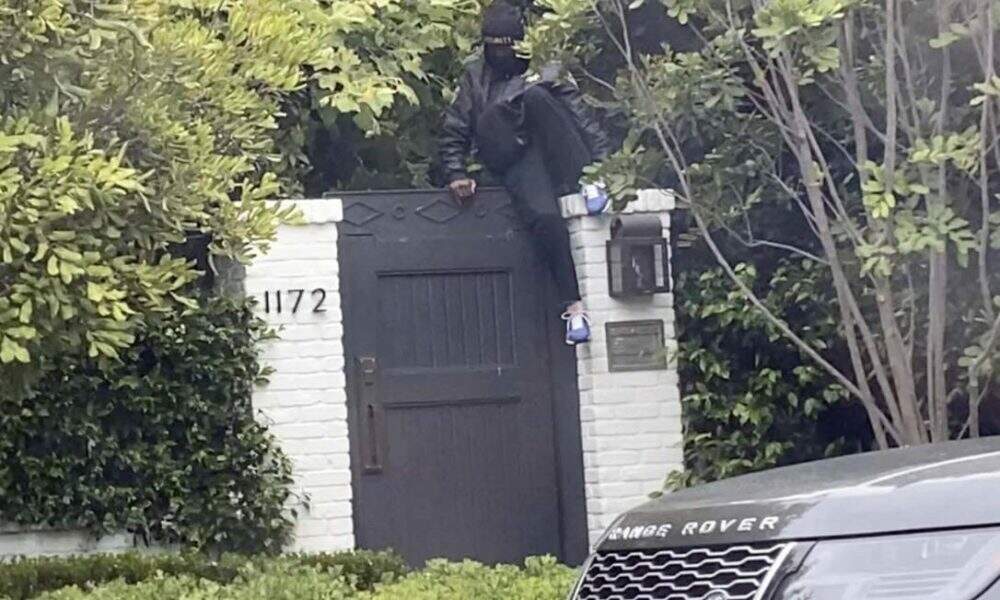 O homem, vestindo calça preta, sapatos azuis, um chapéu preto e uma jaqueta estampada com a palavra “Segurança” em letras douradas, foi visto escalando o portão de Ben Affleck por volta das 8h, de acordo com um porta-voz do Departamento de Polícia de Los Angeles.