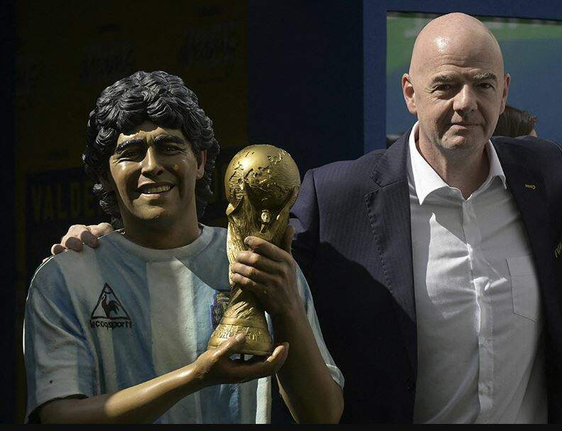“Gostaria que em cada Copa do Mundo, de agora em diante, fizéssemos um dia para celebrar Diego Armando Maradona. Não sou argentino nem torcedor do Napoli. Mas como amamos o Diego, peço que essa homenagem a Maradona esteja em todos os Mundiais”, disse Infantino.