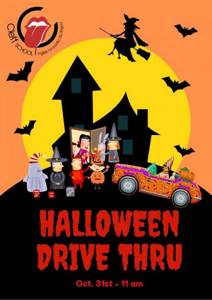 E as crianças se divertem em um Halloween Drive Thru no sábado (31), a partir das 11h. A atividade envolverá todas as unidades da Cleff School em Porto Alegre, com tarefas que terão de ser desenvolvidas pelos pequenos com ajuda dos pais e entrega de doces temáticos. A ideia é fazer o tradicional “trick or treat” em três pontos da cidade próximos às unidades da Cleff.