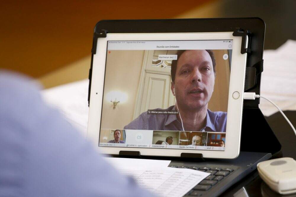 O prefeito Nelson Marchezan Júnior realizou uma conferência por vídeo na manhã desta segunda-feira (30), com representantes de 17 entidades representativas da indústria, comércio e de empresas de serviços de Porto Alegre. O objetivo da conferência foi estabelecer um canal de diálogo com esses setores, bem como alinhar expectativas e discutir medidas que possam atenuar os impactos econômicos das restrições impostas pelo combate à propagação da Covid-19 (novo coronavírus) na cidade.