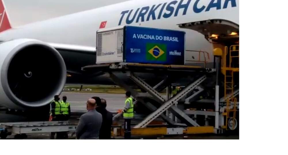 O carregamento, vindo de Pequim, na China, chegou ao Aeroporto Internacional de São Paulo, em Guarulhos, às 6h13min. O voo da companhia aérea Turkish Airlines passou por escalas na Turquia e Islândia.