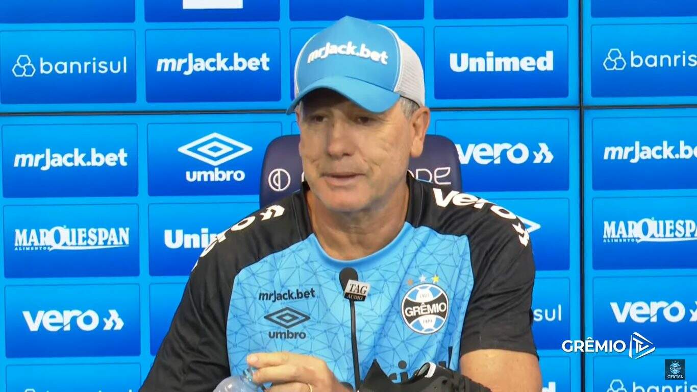 Foto: Reprodução/Grêmio TVO técnico Renato Portaluppi concedeu entrevista coletiva nesta quarta-feira (02), véspera da última partida do Grêmio no Brasileirão da Série B. O jogo é contra o Brusque e acontece na Arena do Grêmio, às 20h. Um dos assuntos mais debatidos é a permanência ou não de Renato.