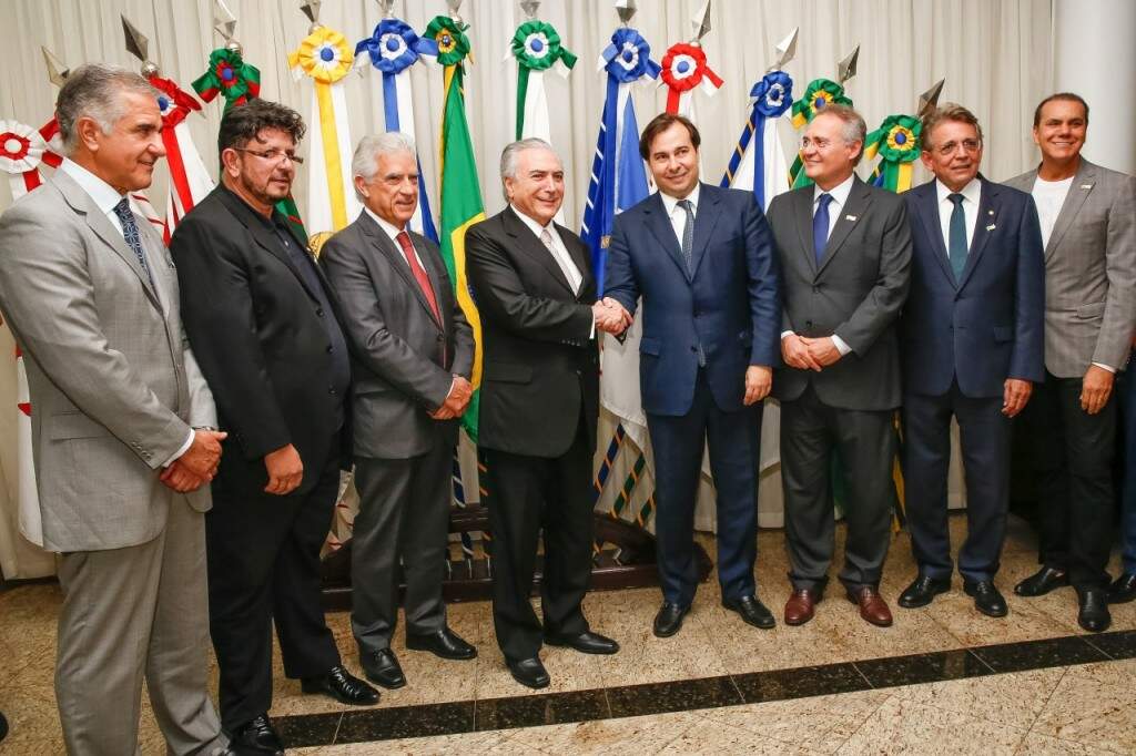 Horas depois de assumir como presidente da República, após a confirmação do impeachment de Dilma Rousseff no Senado, Michel Temer transmitiu, na noite desta quarta-feira, o cargo ao presidente da Câmara dos Deputados, Rodrigo Maia (DEM-RJ), na Base Aérea de Brasília (DF).