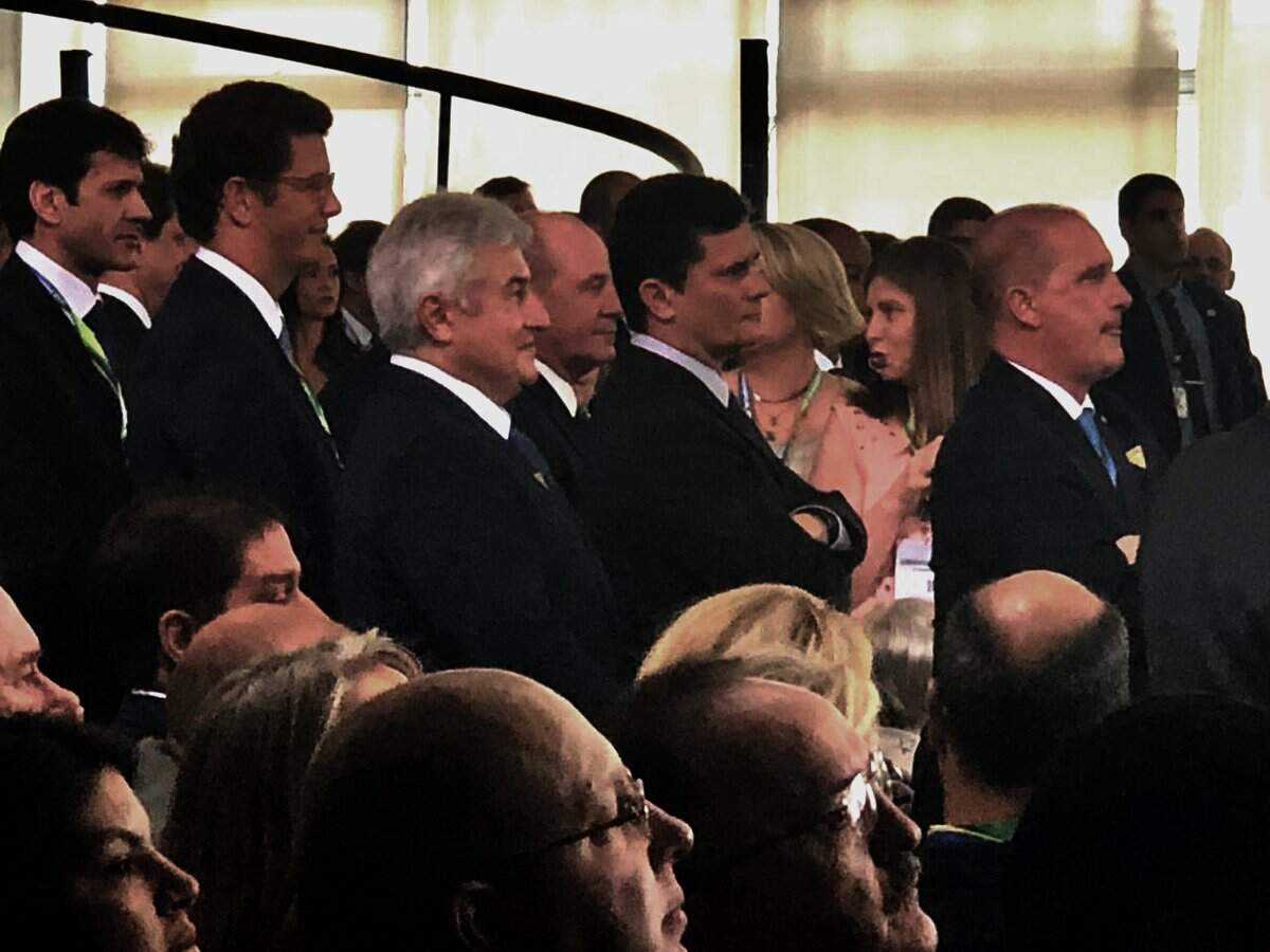 Michele fez o discurso na linguagem de sinais enquanto uma intérprete lia o texto. Ambas se emocionaram durante a cerimônia. “Agradeço também a todos aqueles que demonstraram a sua solidariedade pelos momentos difíceis pelos quais o meu esposo passou recentemente”, disse Michelle Bolsonaro.