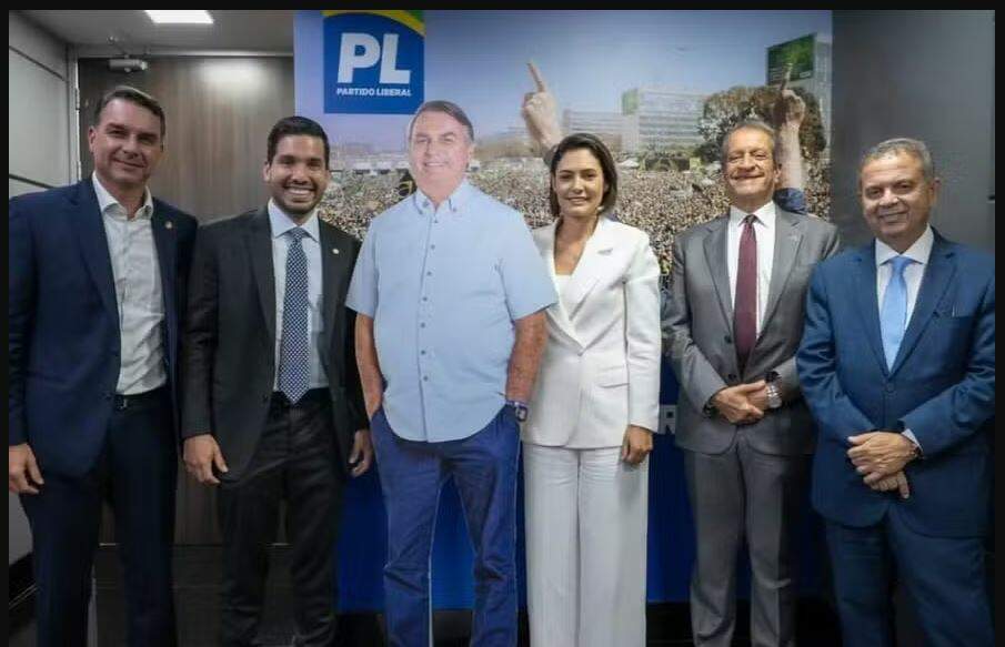 Após a reunião do PL (Partido Liberal) que suspendeu o apoio à candidatura de Ciro Gomes (PSDB) ao governo do Ceará, a ex-primeira-dama Michelle Bolsonaro publicou uma foto com o boneco do ex-presidente Jair Bolsonaro de papelão. No registro, ela posou ao lado do senador Flávio Bolsonaro (PL-RJ), do deputado federal André Fernandes (PL-CE) e do presidente nacional da sigla, Valdemar Costa Neto. Nesta semana, os aliados protagonizaram uma briga pública após Michelle discordar da aliança com Ciro, costurada por Fernandes e defendida pelos filhos de Bolsonaro.
