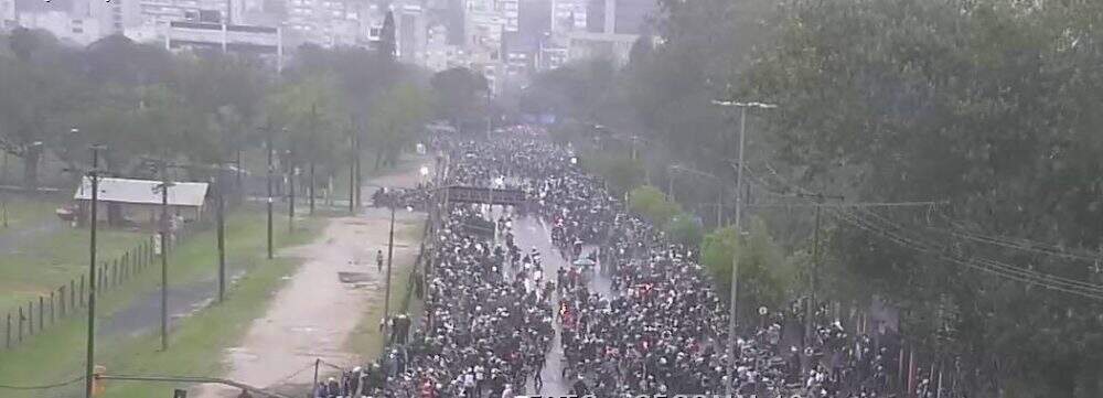 Mesmo com chuva, milhares de motociclistas participaram, na manhã desta quarta-feira (12), da procissão em homenagem à Nossa Senhora Aparecida, padroeira do Brasil, em Porto Alegre.