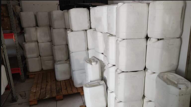 Os policiais perceberam que havia carga na carreta e, ao vistoriarem os reboques, encontraram diversos galões de agrotóxicos proibidos no Brasil, totalizando mais de 10 toneladas. O produto é o Paraquat, que tem a importação proibida pela Anvisa justamente pelos efeitos nocivos que causa ao meio ambiente, aos alimentos e a quem tem contato com ele.