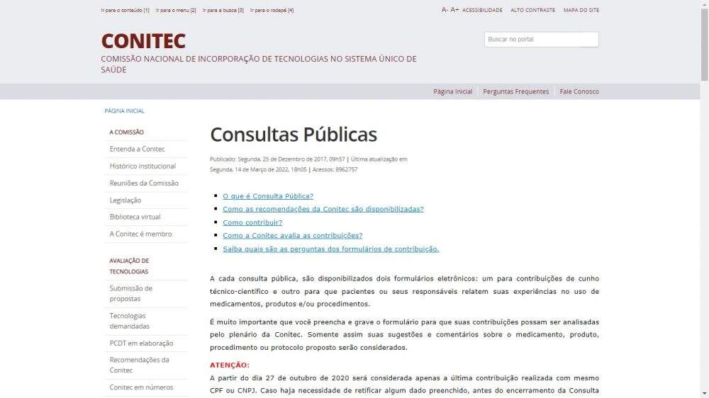 As contribuições sobre o tema podem ser feitas até 24 de março, na página oficial da Conitec. A possibilidade de inclusão do baricitinibe no sistema público foi aprovada pela comissão no dia 10 de março, por entender que as evidências científicas sobre o medicamento mostram as chances de evitar mortes por covid-19. Também foi observada a combinação custo-benefício.