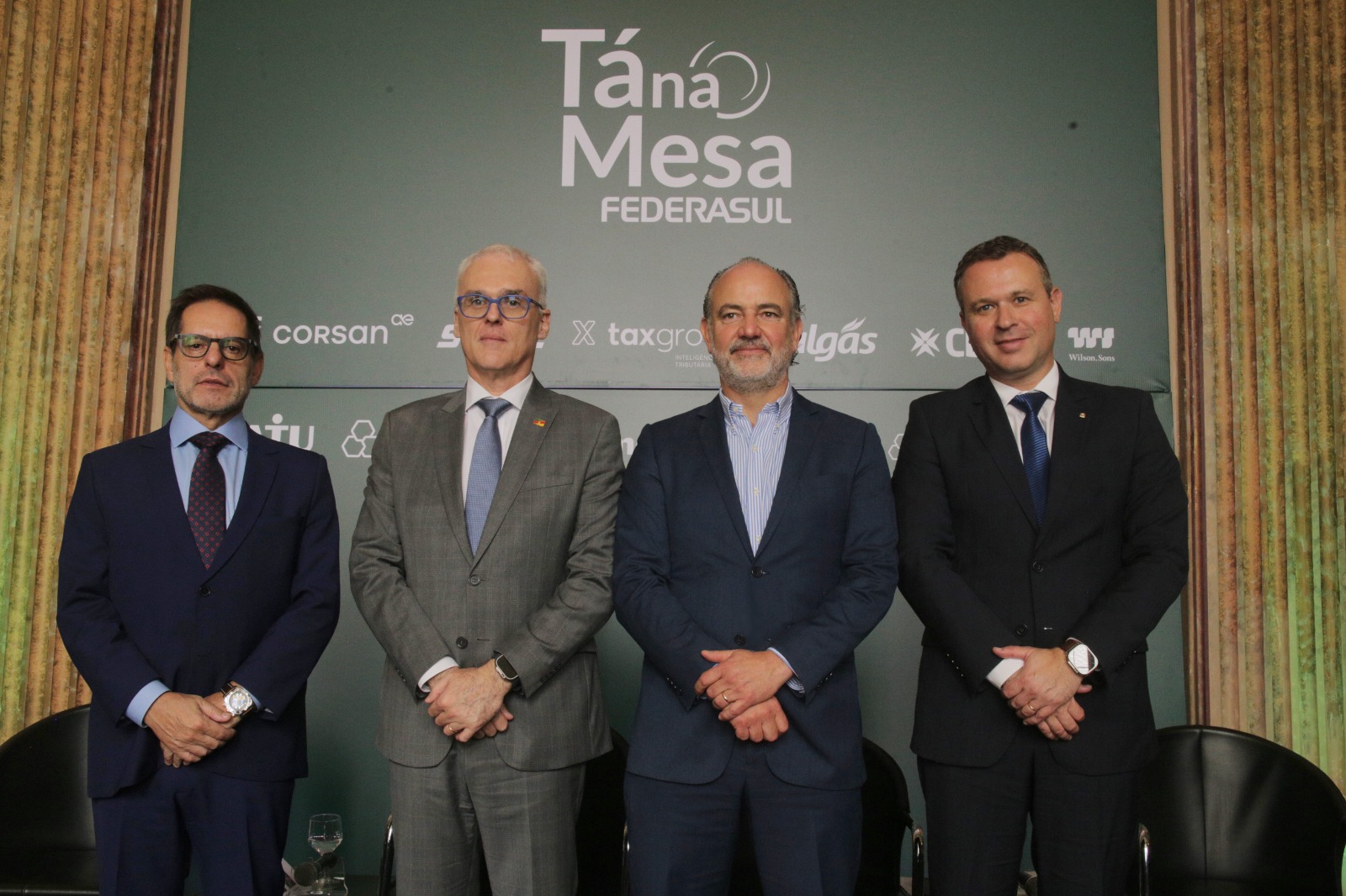 Vice-presidente jurídico da FEDERASUL, Milton Terra Machado, Procurador-Geral de Justiça do Ministério Público Estadual, Alexandre Saltz, presidente da FEDERASUL, Rodrigo Sousa Costa e o Procurador-Chefe do Ministério Público Federal no RS, Felipe Müller.