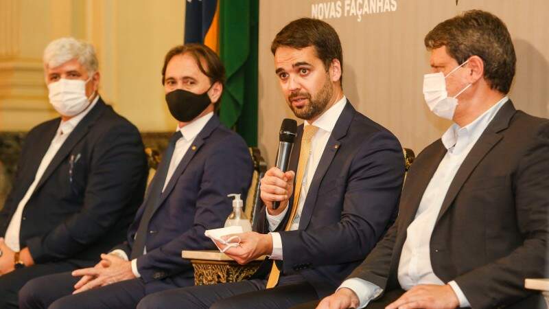 Foto: Felipe Dalla Valle/Palácio PiratiniApós a homologação do novo calado do Porto de Rio Grande e de um almoço no Palácio Piratini, o governador Eduardo Leite e o ministro da Infraestrutura, Tarcísio Gomes de Freitas, participaram de uma coletiva de imprensa no Salão Negrinho do Pastoreio nesta segunda-feira (26). Além da atualização de obras federais no Rio Grande do Sul, o ministro confirmou a retirada da poligonal portuária em Porto Alegre, permitindo que o Estado decida sobre o futuro do Cais Mauá.