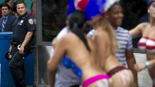 Em meio à profusão de personagens inusitados que circulam diariamente pela Times Square, um dos principais e mais movimentados pontos turísticos de Nova York (EUA), uma categoria em especial vem gerando controvérsia nas últimas semanas: as mulheres de topless, com os corpos pintados, que posam para fotos ao lado de turistas em troca de gorjetas.