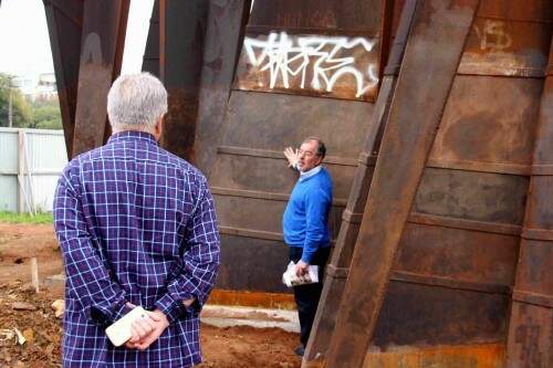 Porto legre 2016 – Inspeção da obras do Monumento dos Açorianos. Arquiteto Luiz Antonio Custódio e o Secretário Roque Jacoby – FOTO – Jackson Ciceri