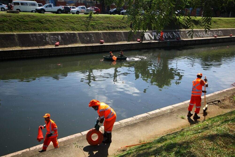 Profissionais foram atingidos por veículo quando cortavam a grama no canteiro do canal, na Avenida Ipiranga. (Foto: Jackson Cicieri/ o Sul)