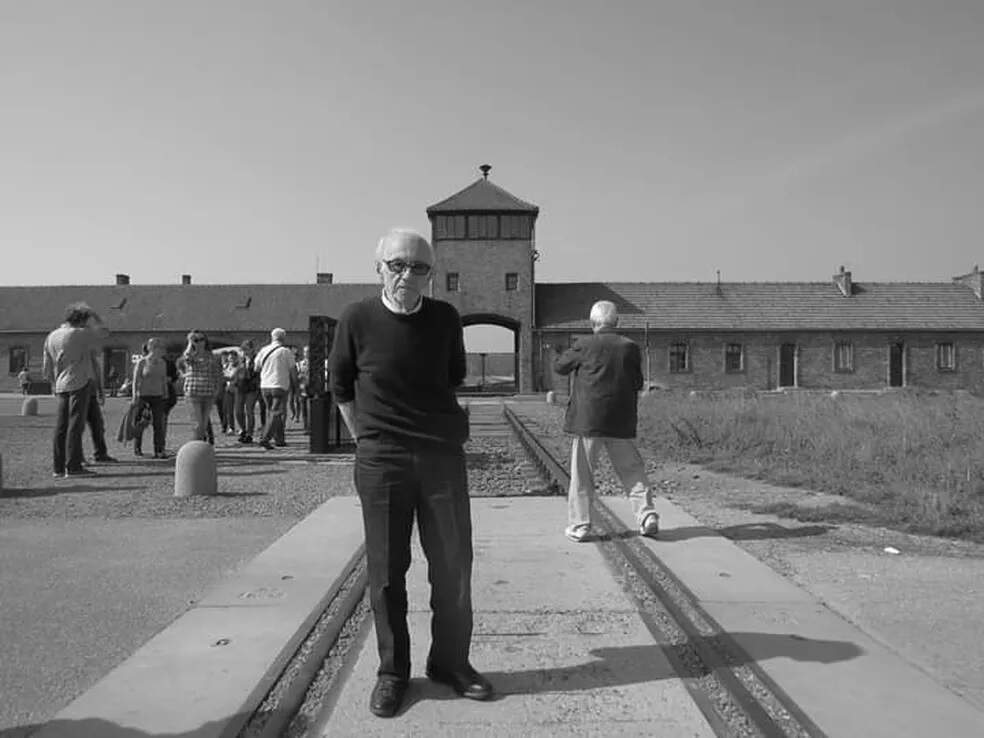 Andor Stern em visita ao campo de concentração de Auschwitz, na Polônia.