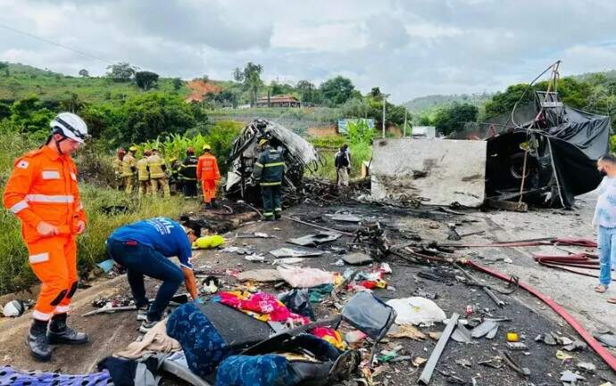 Imagens do local mostravam um cenário de destruição, com destroços espalhados pela pista e o ônibus reduzido a uma carcaça. A BR-116, onde ocorreu a tragédia, é conhecida como a rodovia mais letal do Brasil. Em 2023, foram registradas 559 mortes ao longo de sua extensão, sendo 155 apenas em Minas Gerais.