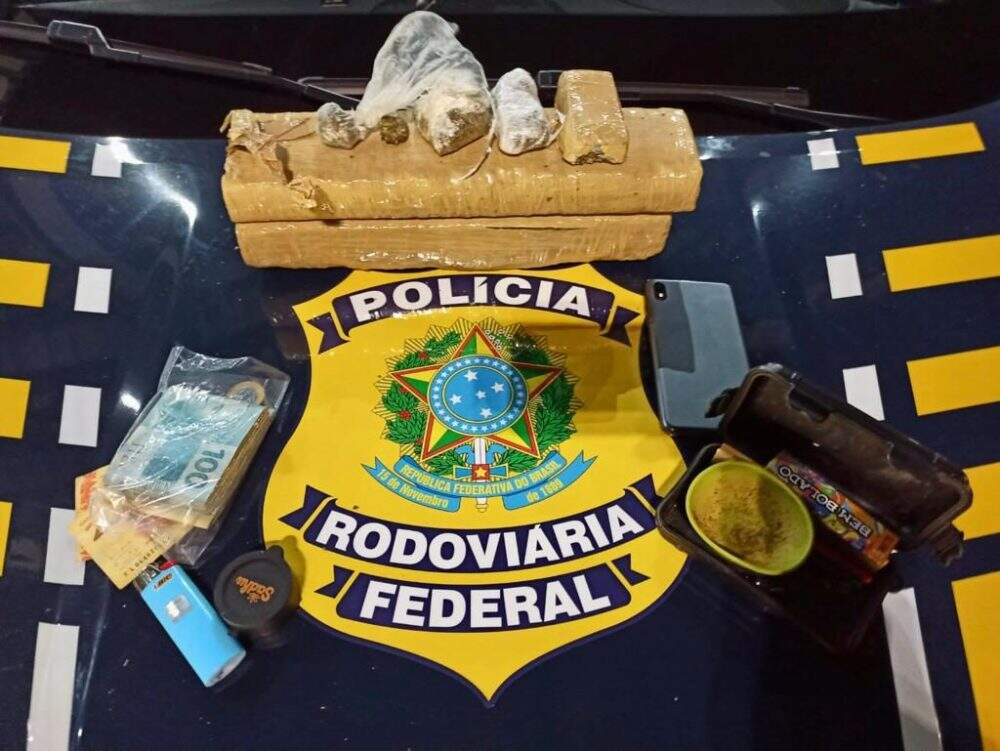 Na revista das bagagens, os policiais encontraram um quilo e meio de maconha na mochila do condutor. A droga, depois de misturada e fracionada, poderia produzir mais de três mil cigarros do entorpecente.
