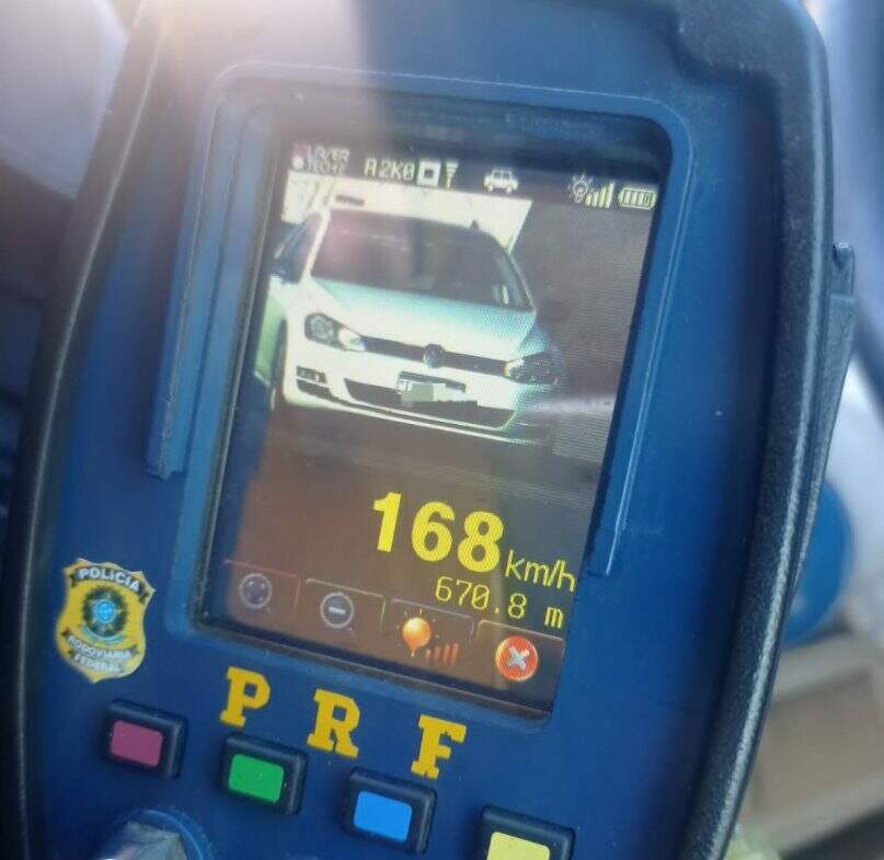 Foto: PRF/DivulgaçãoA PRF (Polícia Rodoviária Federal) flagrou um motorista dirigindo a 168 quilômetros por hora na BR-293, no trecho entre Candiota e Bagé, na Região da Campanha, na tarde de domingo (16).